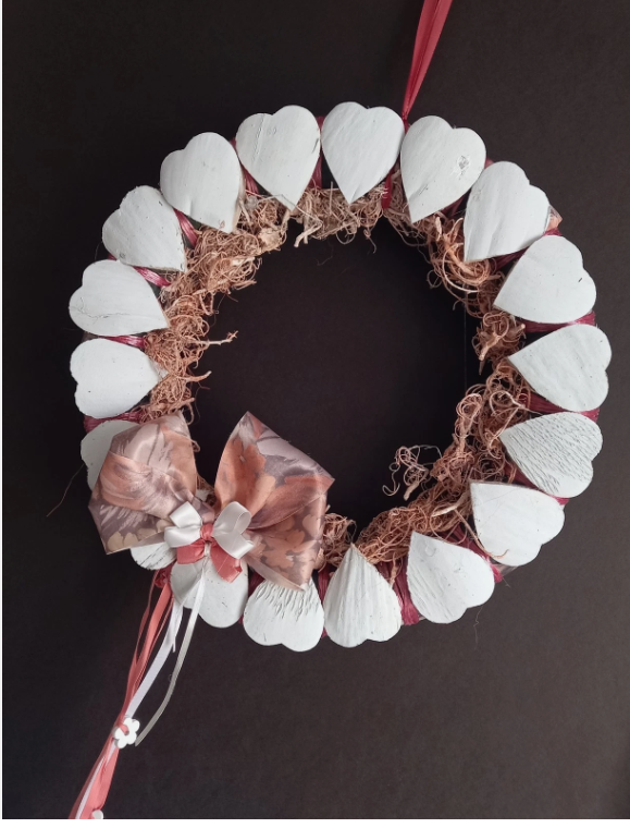 Sommerlicher Kranz mit Kokosherzen in natur apricot weiß,