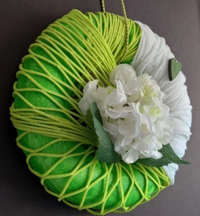 Erleben Sie den Charme des Sommers mit diesem selbstgemachten Türkranz in frischen Grün-Weiß-Tönen.