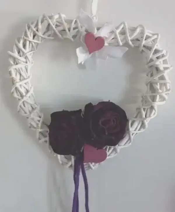 Reben Herz weiß lila Rosen 25x78cm Landhausstil Hochzeit sommerliche Dekoration