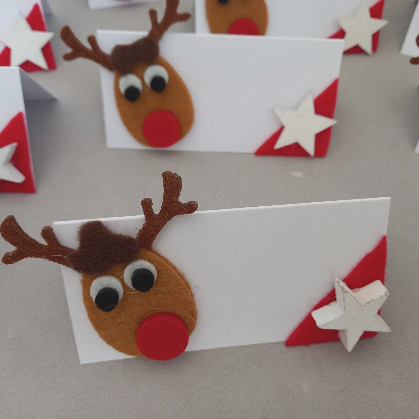 12 Platzkarten mit Rentier - Kopf für die Weihnachtstafel je 5 x 10cm Tischkarte