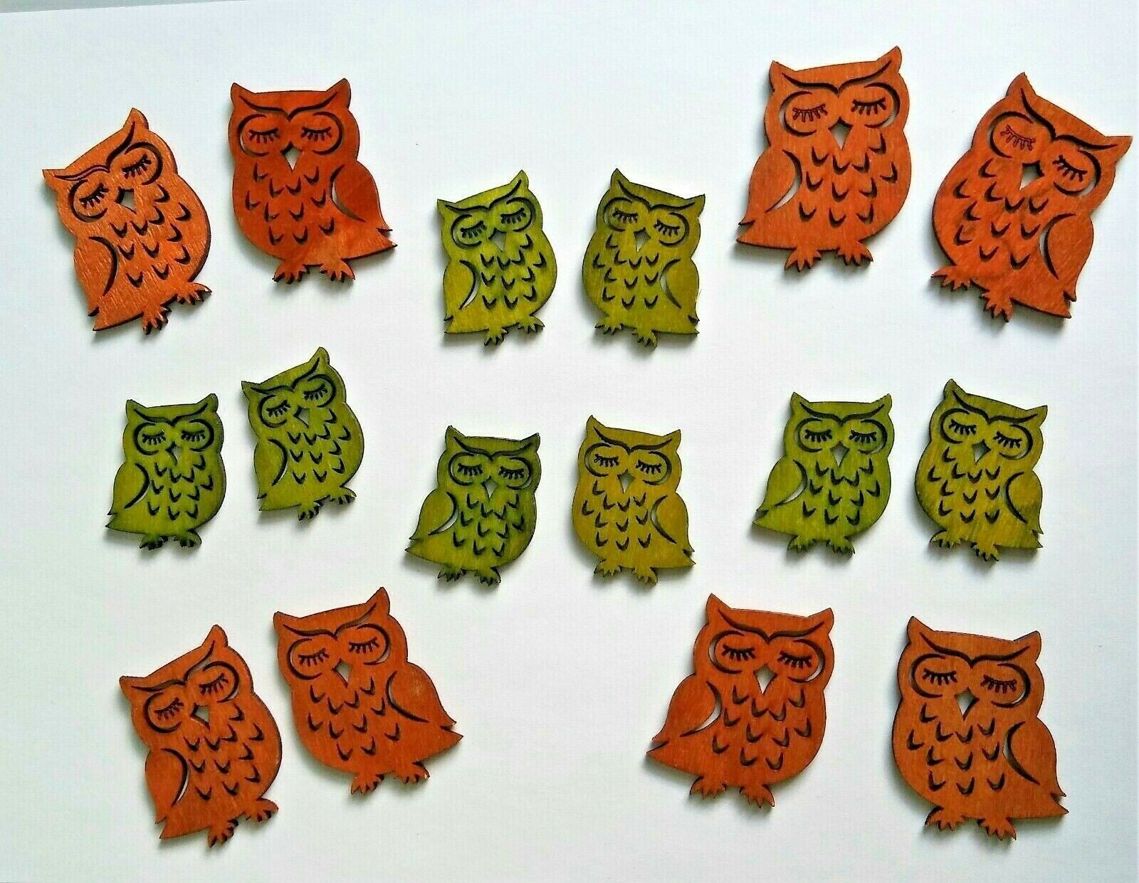 16 Eulen aus Holz braun und grün Holzstreuer 5cm und 3,5cm Herbst Basteln Deko