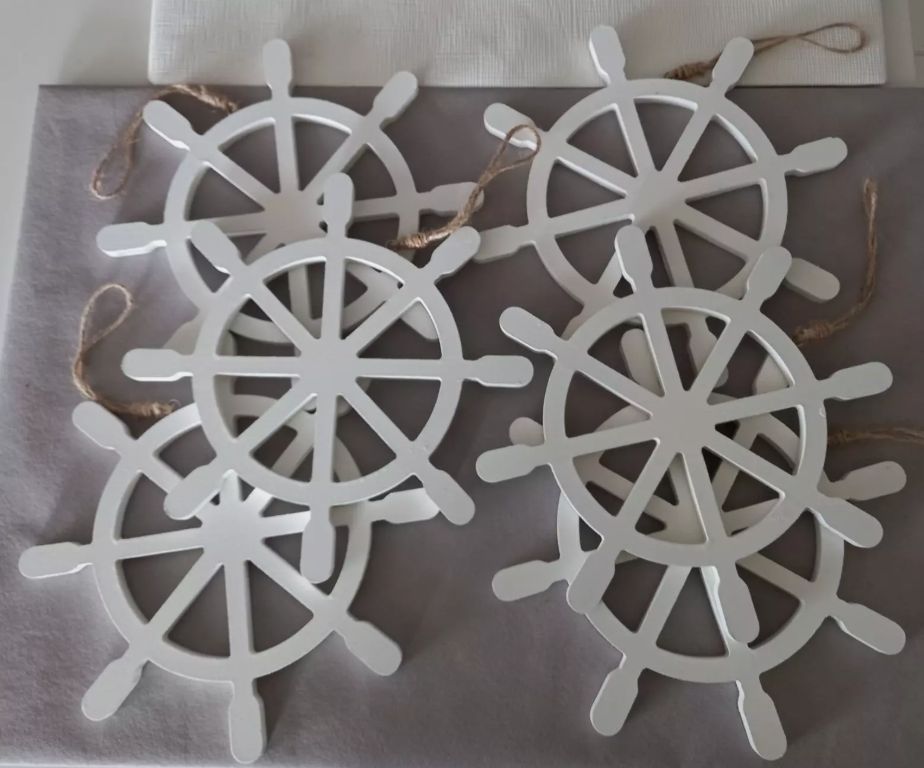 6x Steuerrad Holz weiß 20cm mit Hängeband Basteln + Dekorieren neu Florissima