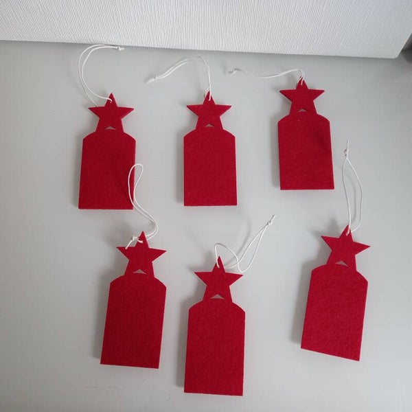 Mit der Größe von 5 x 12 cm (22 cm inklusive Band) sind diese Anhänger aus Filz und Holz perfekt geeignet, um Ihrem Fest eine persönliche und dekorative Note zu verleihen.