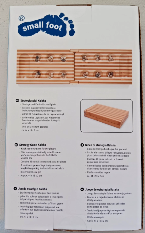 Kalaha groß Mancala small foot 44x13x2cm Strategiespiel für 2 Personen Holz neu