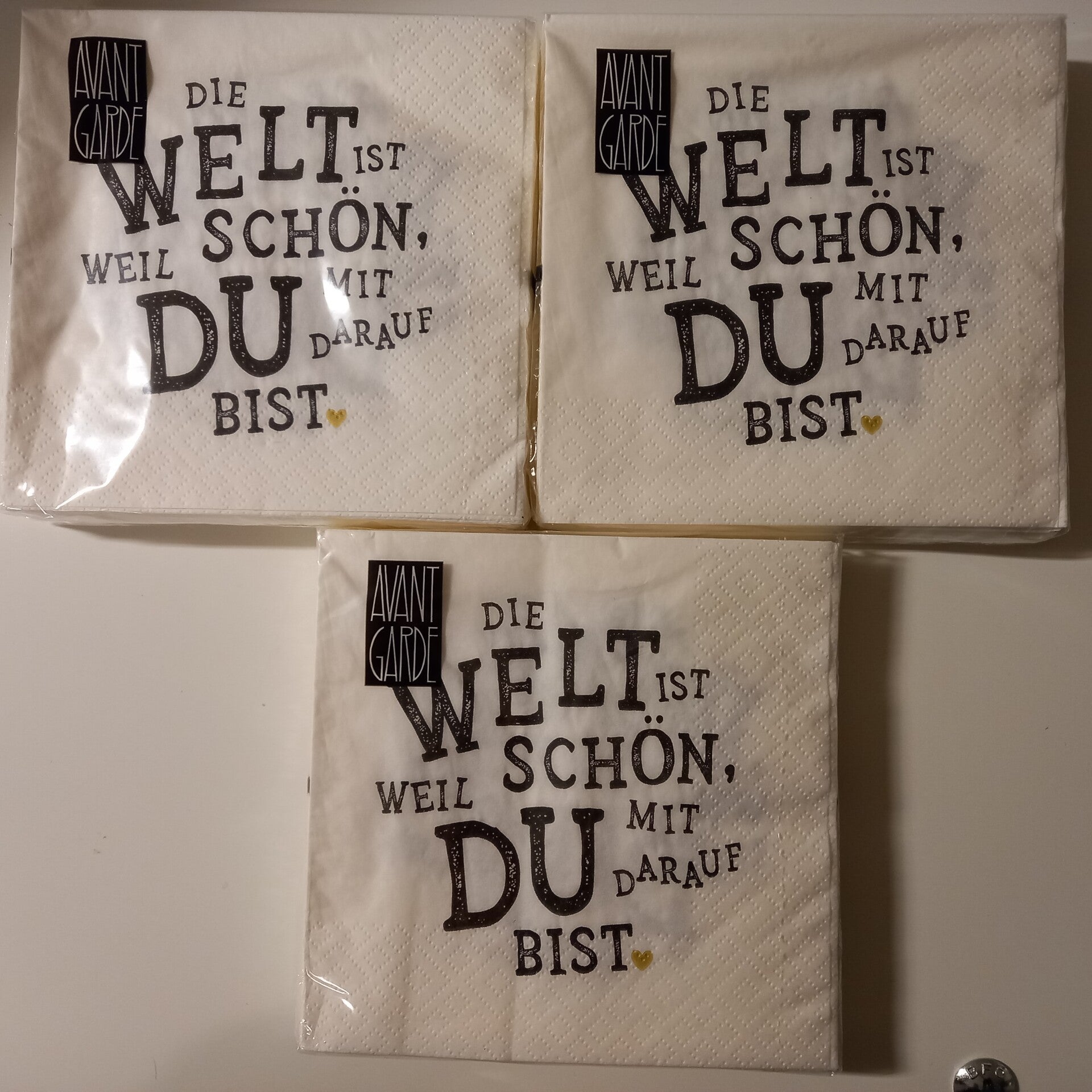 60 Servietten Schriftzug " Die Welt ist schön, ..." schwarz weiß 33 x 33cm Party