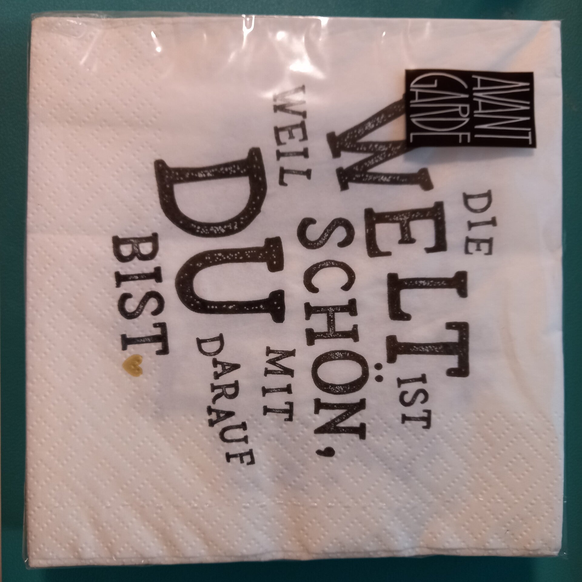 Diese quadratischen Papierservietten in den Maßen 33 x 33 cm, gestaltet mit einem ansprechenden Schwarz-Weiß-Schriftzug, verleihen Ihrem Tisch eine persönliche und moderne Note.