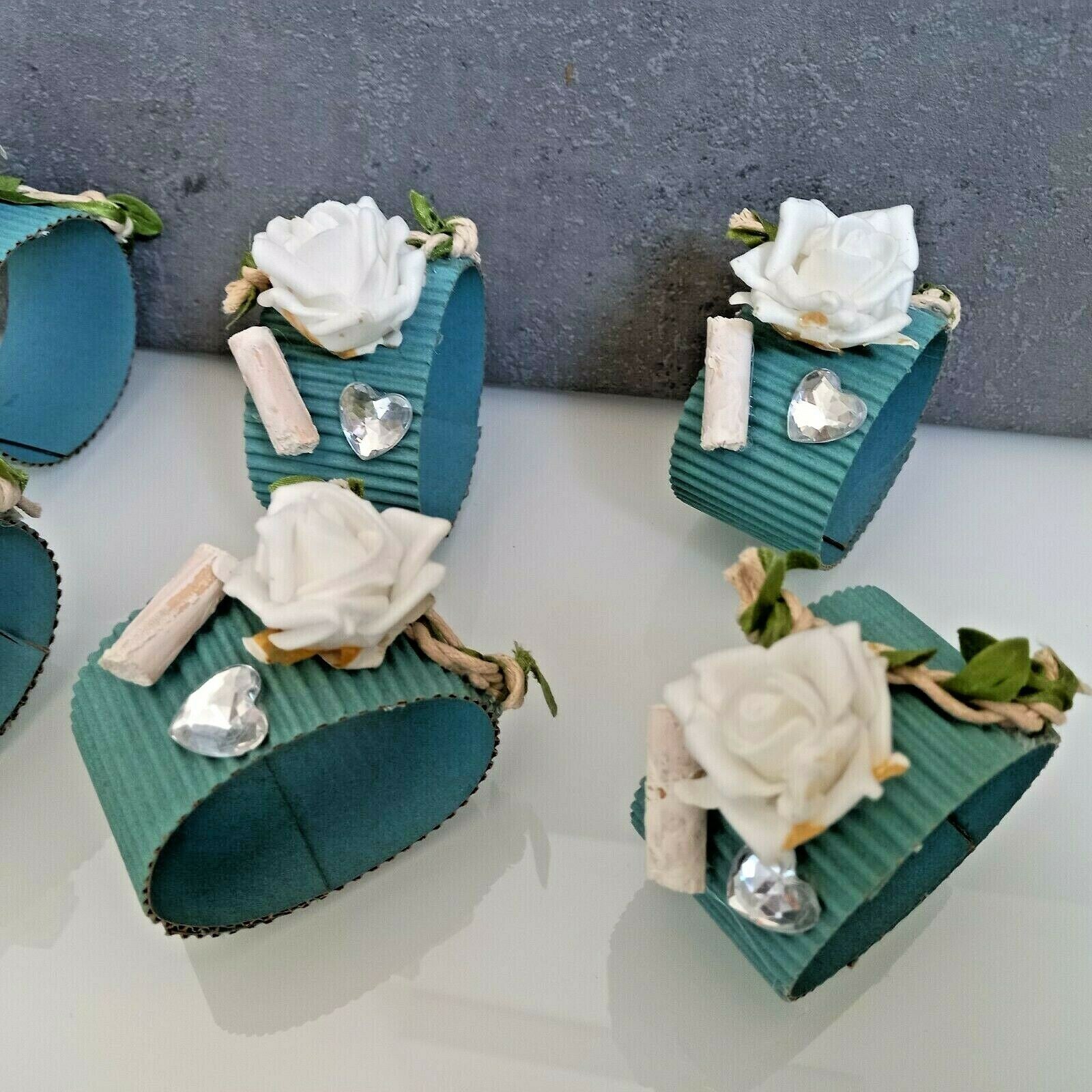 Diese handgemachten Tischdekorationen sind perfekt für romantische Anlässe wie Hochzeiten oder Kommunionen.