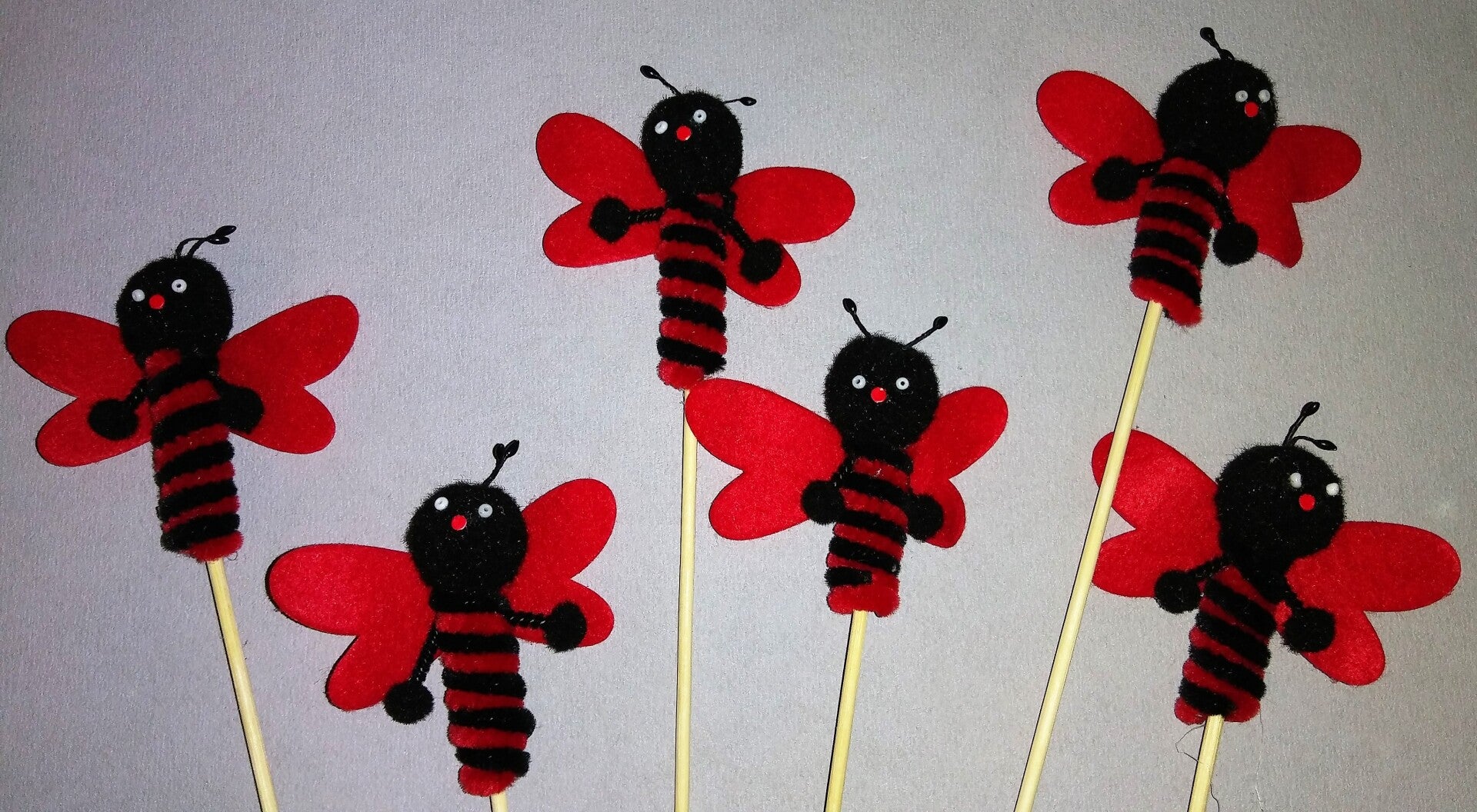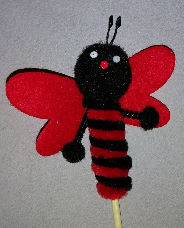 Dieses Set besteht aus 6 süßen Marienkäfer-Dekoartikeln, die auf einem Stab aus Cenille befestigt sind.