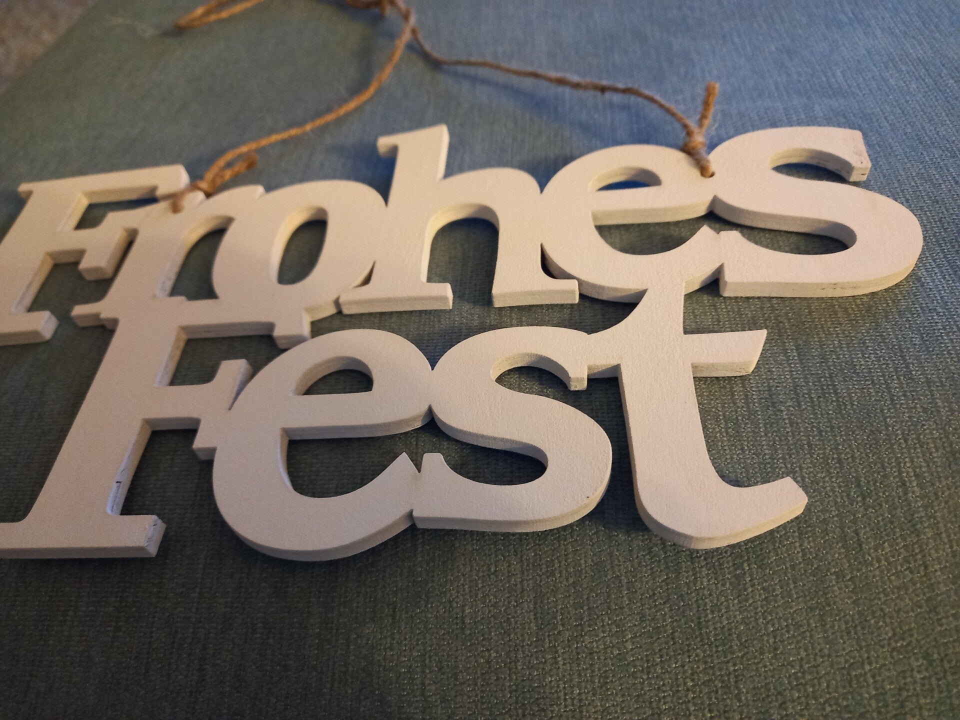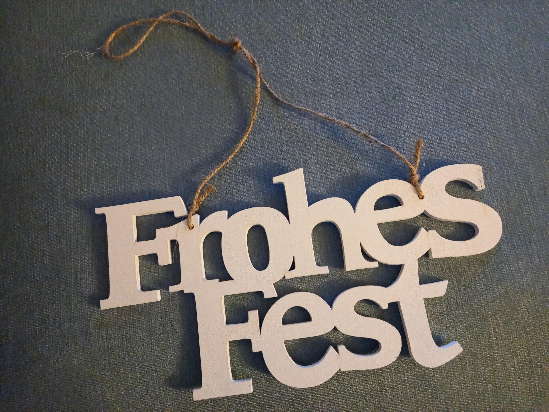 3 x Schriftzug in weiß gelb " Frohes Fest " Holz mit Hängeband 25 x 13cm