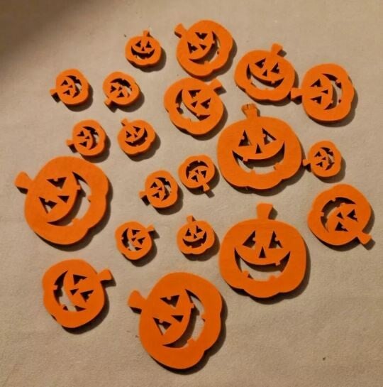 Diese orangefarbenen Streuteile der Marke OD, ideal für den Halloween-Anlass, in verschiedenen Größen von 3 bis 7 cm und sind perfekt geeignet, um jedem Bastelprojekt eine gruselige Note zu verleihen.