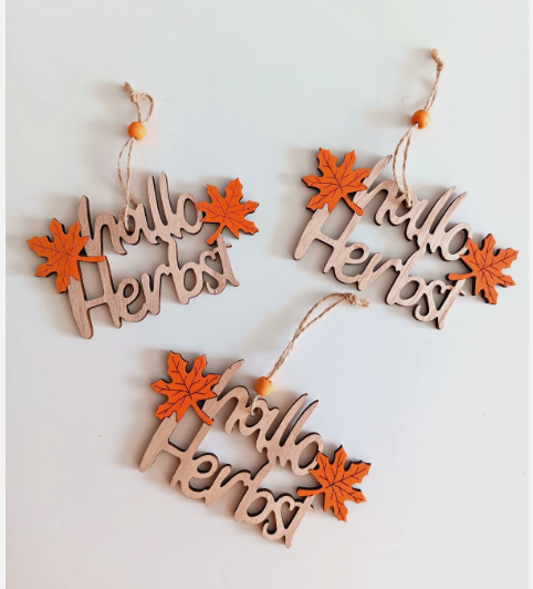 3er-Set Hallo Herbst Buchstaben Schriftzug aus Holz 13 x 7 (14cm) zum Aufhängen