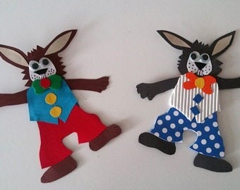 Die Hasen sind ca. 14,5cm x 12,5cm groß und aus Pappe hergestellt.