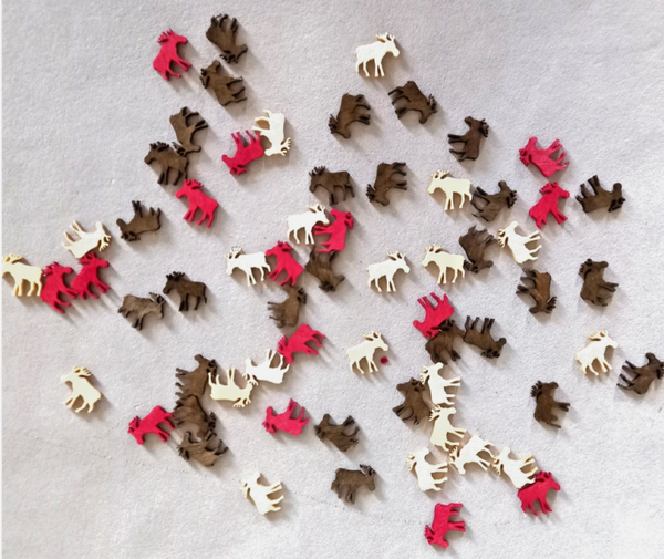 65 Rentiere Streuer 2cm in creme, braun und rot aus Holz mit Fehlern